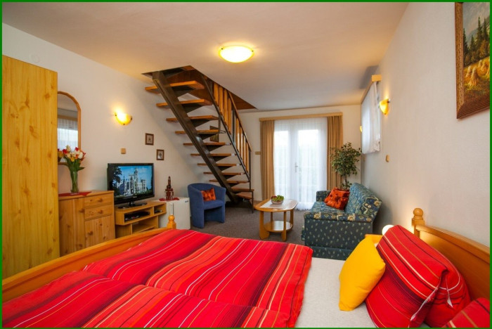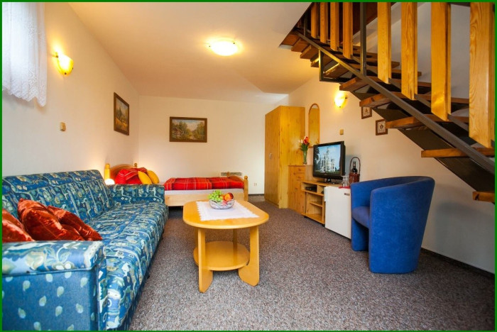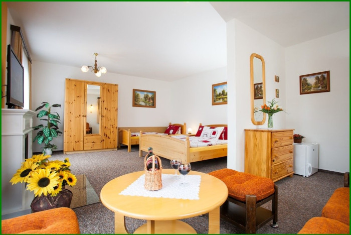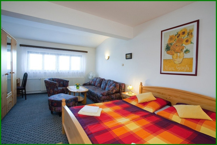 Jednolůžkové, dvoulůžkové, třílůžkové a čtyřlůžkové pokoje a také dvoupokojový apartmán pro 1–4 osoby.
